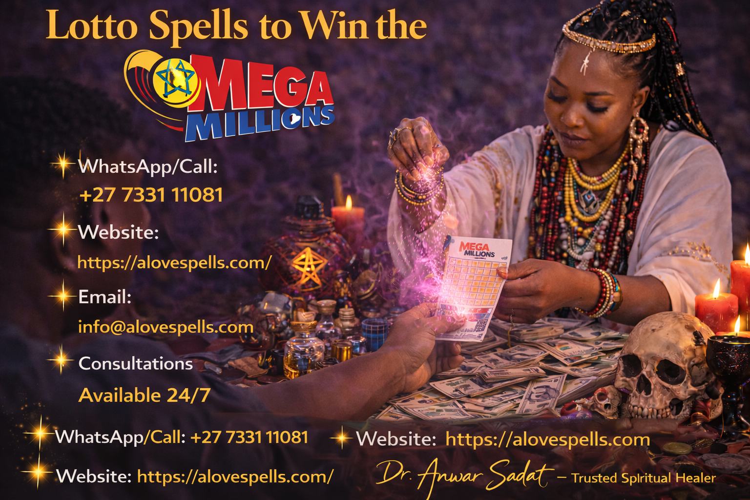 Some people explore lotto spells to win the Mega Millions jackpot as part of spiritual traditions that focus on attracting prosperity and positive energy. These practices are typically symbolic rituals designed to strengthen belief, intention, and optimism.